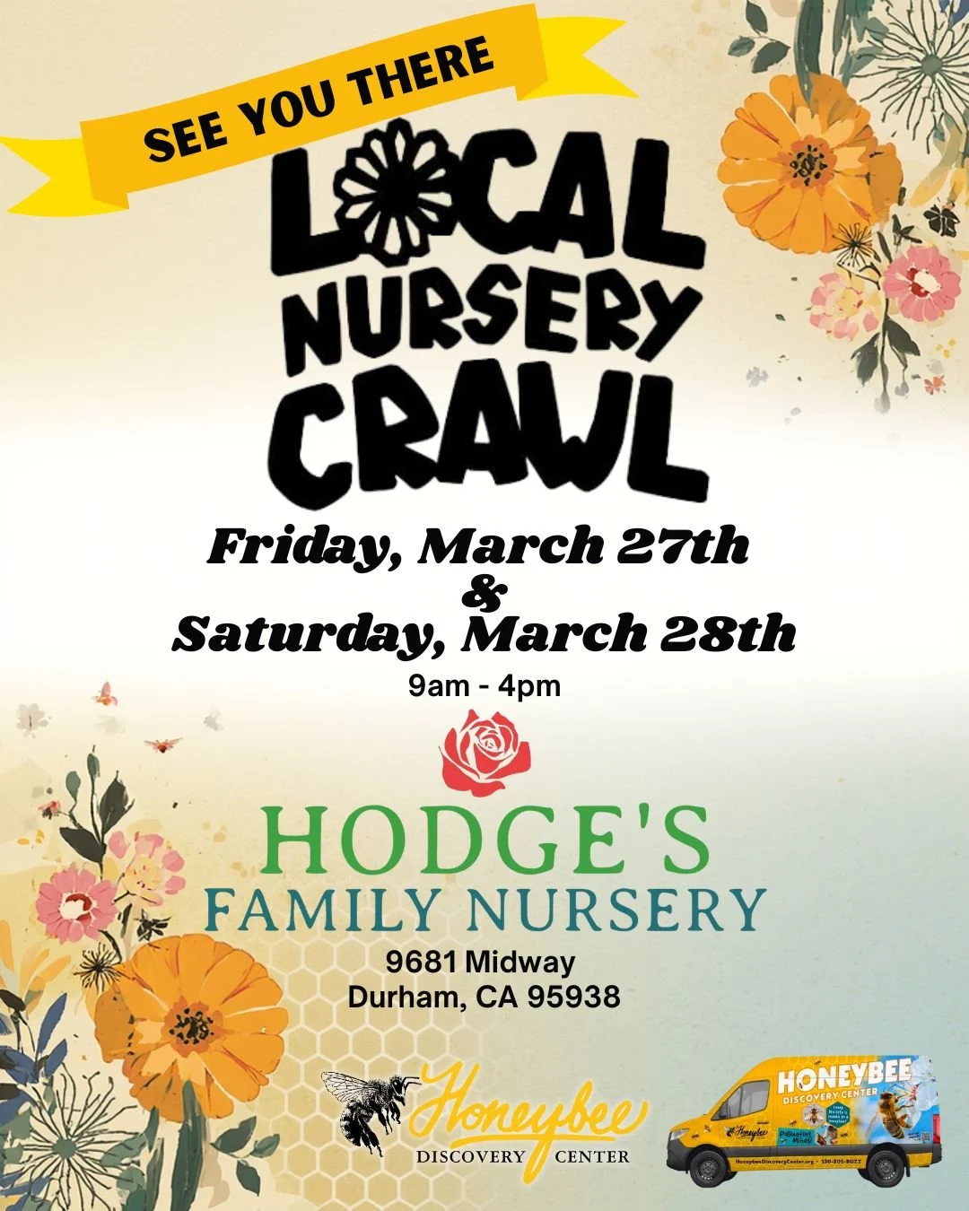 Honeybee Discovery Center will be at Hodge’s Family Nursery at 9681 Midway Durham, CA 95938 during the 12th annual Local Nursery Crawl. Bee sure to come check out the nursery and shop at our pop-up shop.